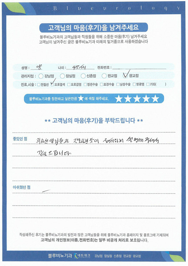 의사선생님들과 간호사분들이 상세하게 설명해주셔서 감사드립니다