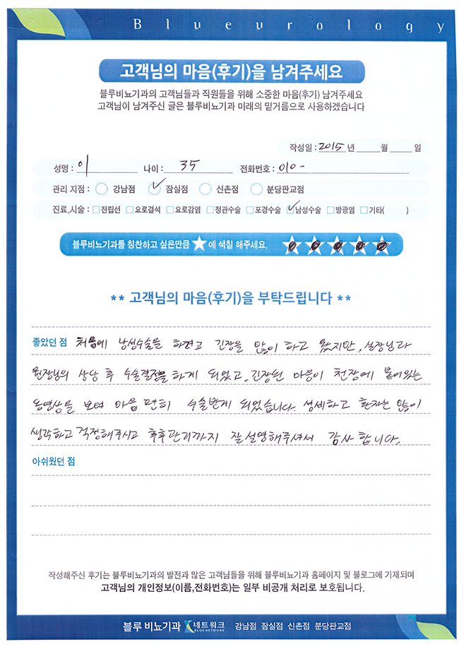 제목 [남성수술] 원장님, 원장님 덕분에 마음편히 남성수술받았습니다