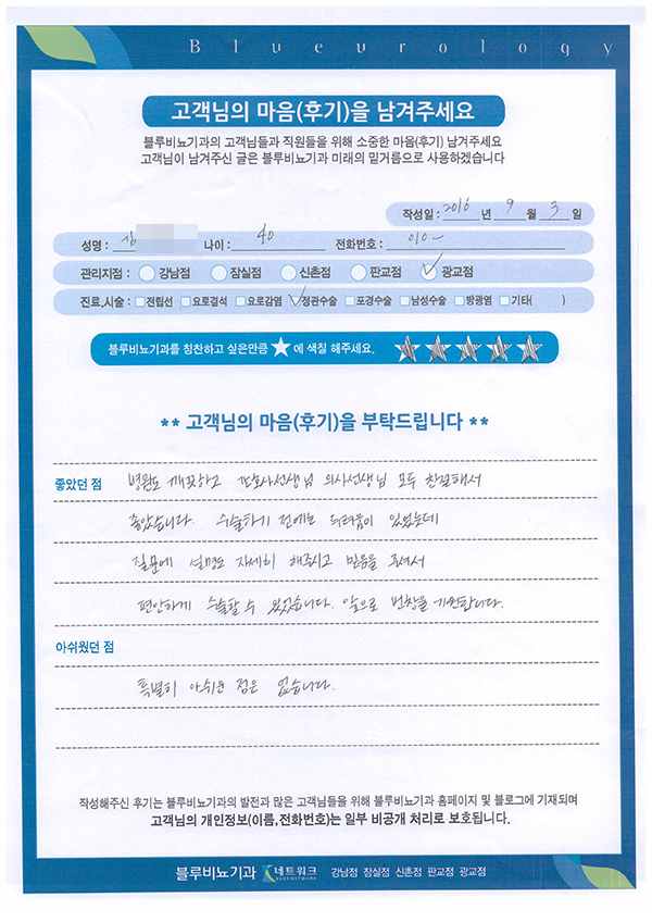 제목 [정관수술] 병원이 깨끗하고 친절하십니다.